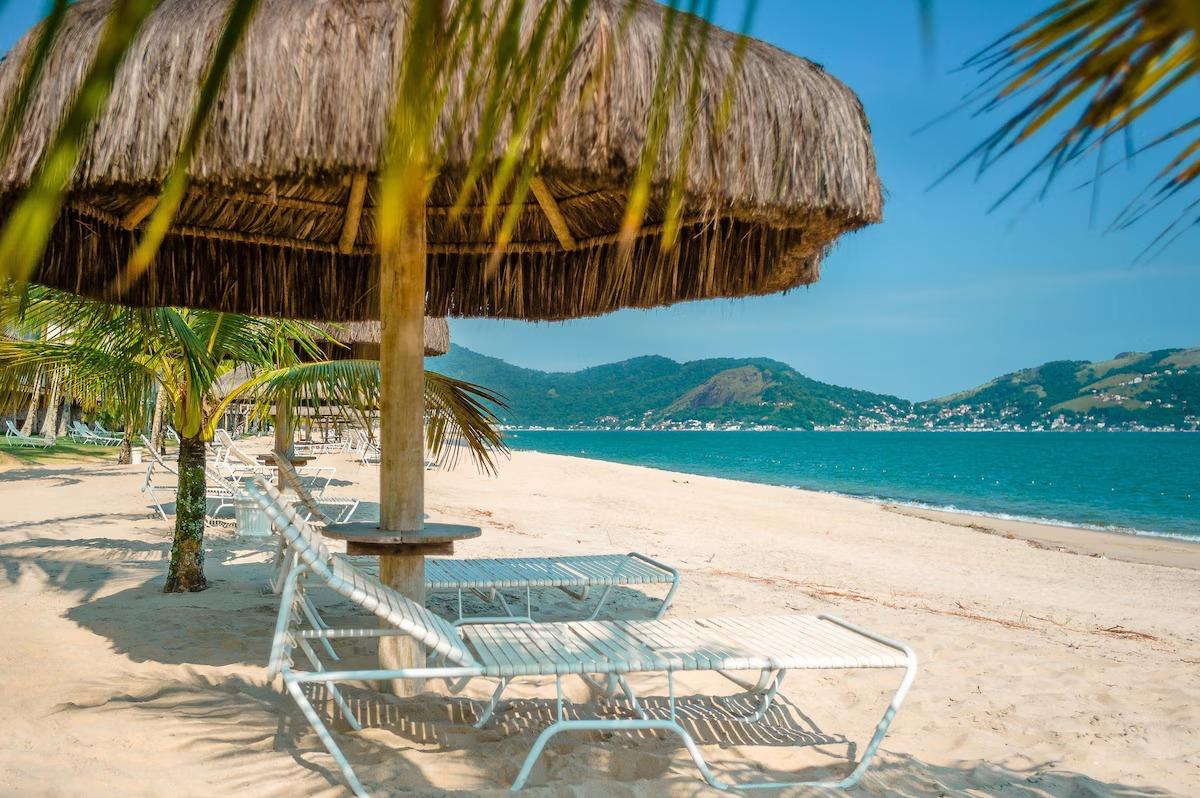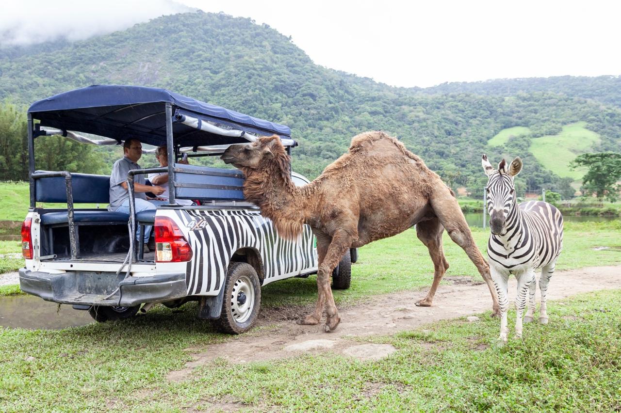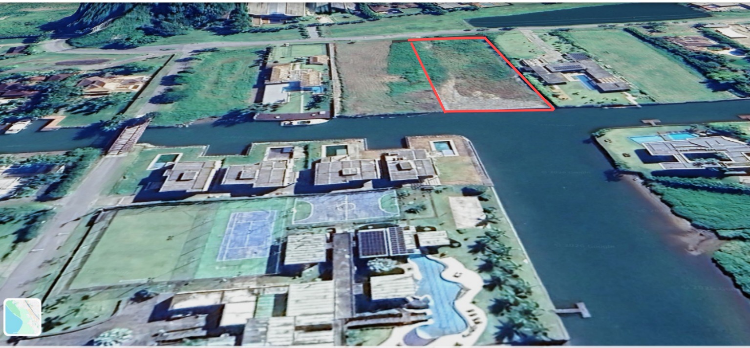 Terreno de frente para Baía da Ilha Grande cercado por montanhas cobertas pela mata e um safari com zoológico ao ar livre.